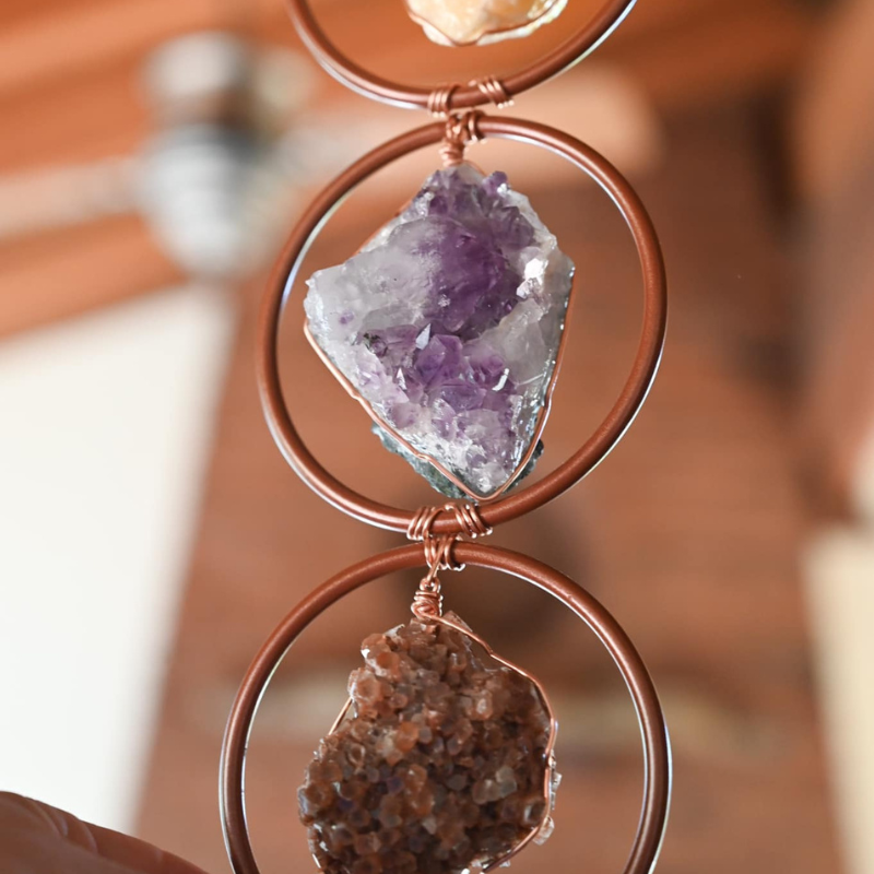 💎 Amethyst – Gilt als Schutzstein. Er hilft, den Geist zu klären und negative Gedanken, Stress und Angst loszulassen. Bringt Harmonie in den Raum und Ruhe für alle, die dort leben.